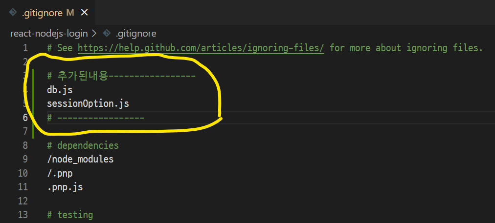 파일을 분리하여 작성한 다음, .gitignore에 db.js와 sessionOption.js을 추가하면 github 등에 업로드 되지 않습니다.