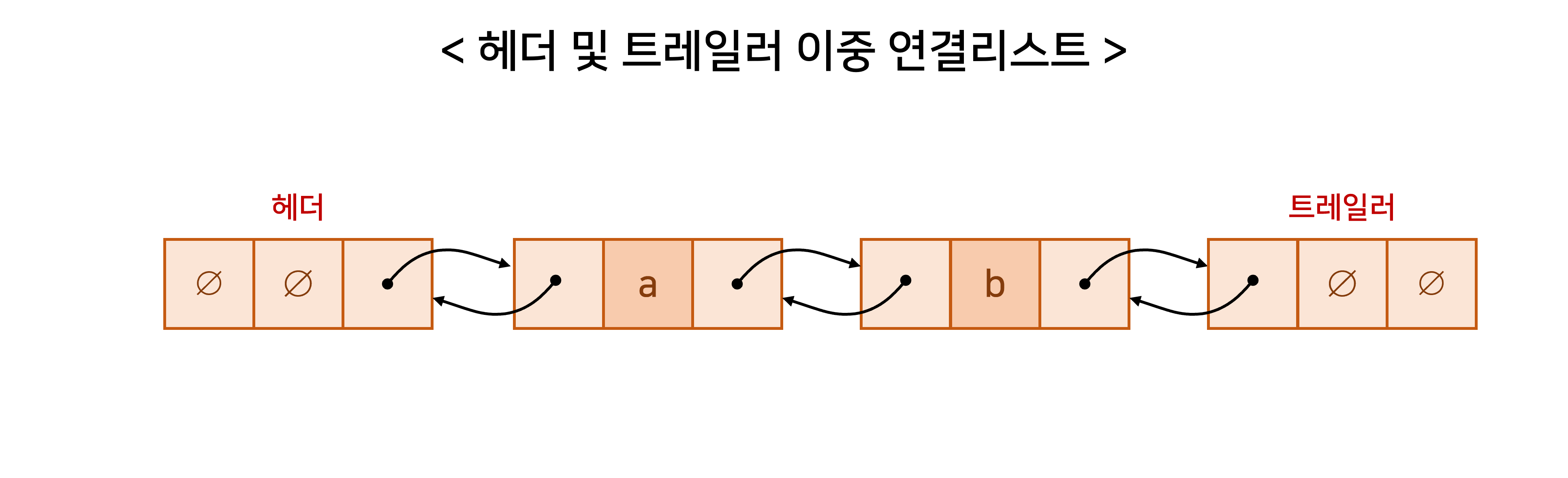 - 헤더 및 트레일러 연결리스트(linked lists with header and trailer) 등